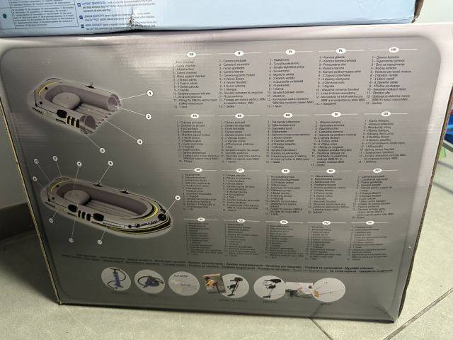 Dimensiones bote inflable inflado: 267 x 127 cm, peso: 11 kg, capacidad de carga: 250 kg, cuatro soportes para remo/rude