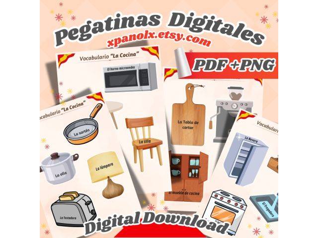 This set includes 16 educational stickers to help you learn basic vocabulary in Spanish.