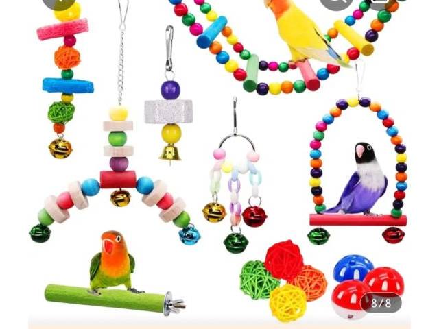 Offer various completely new toys for the occupation of birds in the aviary for purchase.