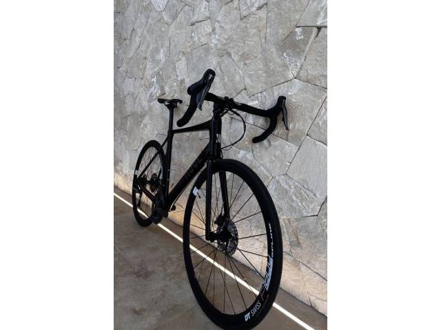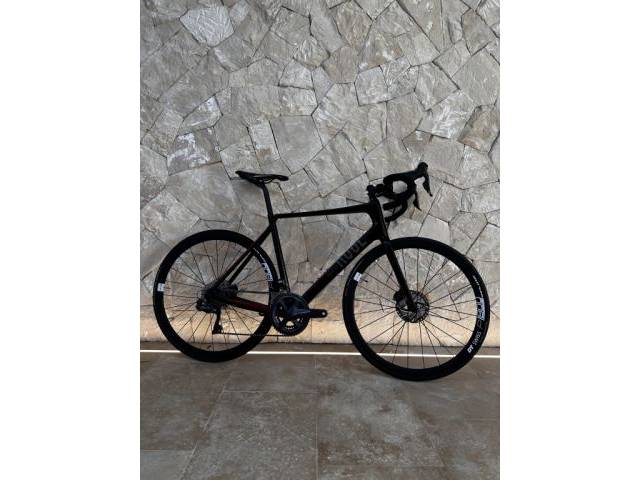Equipped with Shimano Ultegra Di2 11-speed electronic shifting (50-34 / 11-32) and hydraulic disc brakes. Lightweight and stiff carbon frame, seatpost also made of carbon. High-quality DT Swiss wheelset installed. Weight approx. 8 kg.