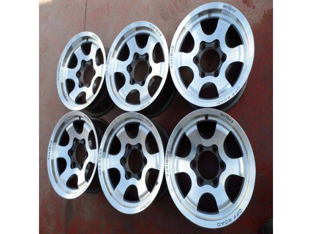 6 brand new aluminum and reinforced rims. brand off road melber r15x7 et+10 anchor 6x139, 7 Classics. for chevrolet tahoe, fiat bullback l200, hummer h1, hyundai h1 terracan, infiniti q30, qx30 qx56, isuzu troper rodeo d-max, kia caraban, mazda b2500, bt50, mitsubishi montero pajero, nissanno, patrol, opel frontier, ssangkorando toyotaso, land cruiser Hilux. with the possibility of tires, depending on the vehicle. sent to all of Spain. Consult