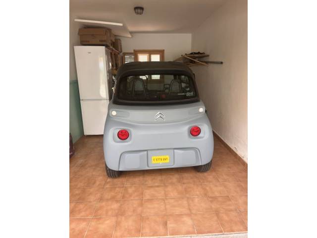 One year old. A garage-kept vehicle. Drives up to 45 km/h. 75 km range. Needs only to be charged from a regular power outlet. Can be driven with a moped license.