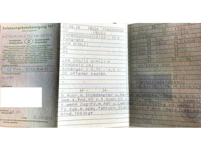 Car trailer 'Pongratz LPA 250 1.3 tonnes': I also have a trailer (see second registration document) for sale. Preferably also separately or individually.