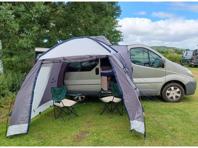 Ideal for weekends and holidays. Side awning and roof rack for transporting surfboards, canoe, etc.