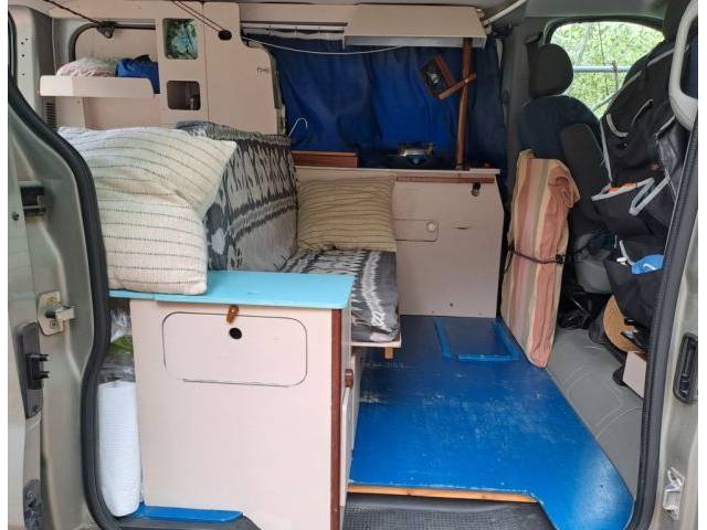 Interior conversion with solid floor panel as a stable base for furniture, bed and flooring.