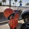 Like-new Vespa Primavera 125 orange with Topcase (here a small scratch) for sale with Spanish license plate.