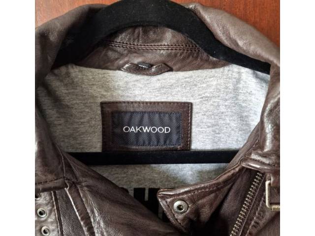 Never worn women's leather jacket of the brand OAKWOOD, bought at Zalando, unfortunately wrong buy, dark brown, various pockets outside, one inside pocket, very high quality, inner lining, sides and collar with adjustable buckles, size L-XL (manufacturer's information 2XL, but is significantly smaller.