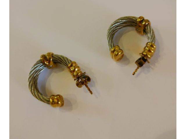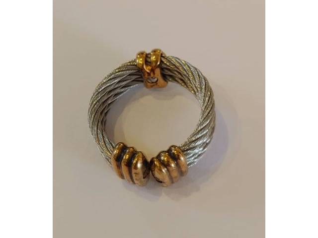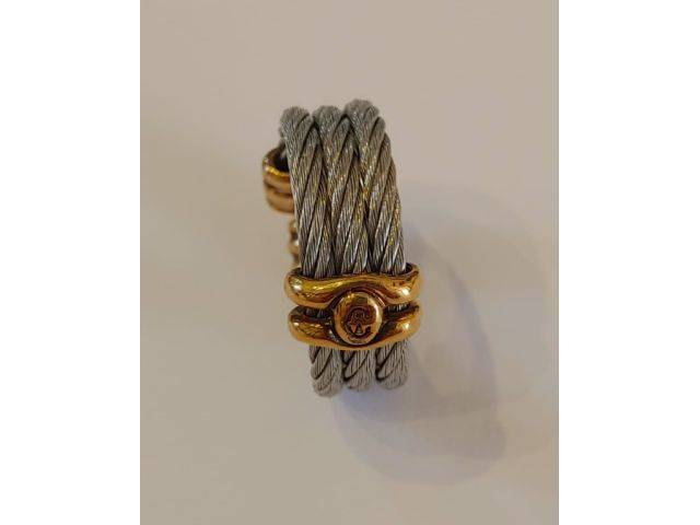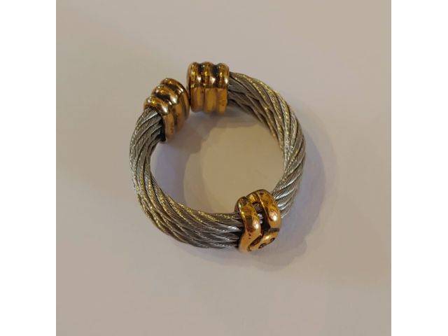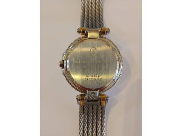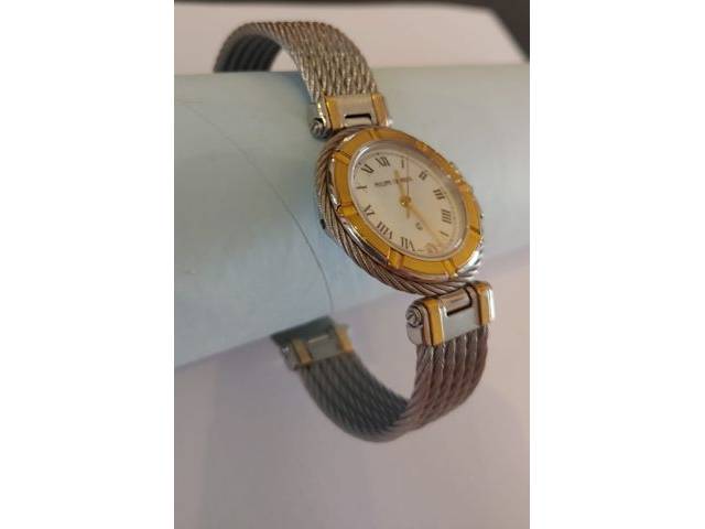 Very well preserved set by the well-known designer Philippe Charriol, watch (quartz movement), ring, bracelet and 2 earrings, gold-plated in steel with silver applications, completely cleaned.