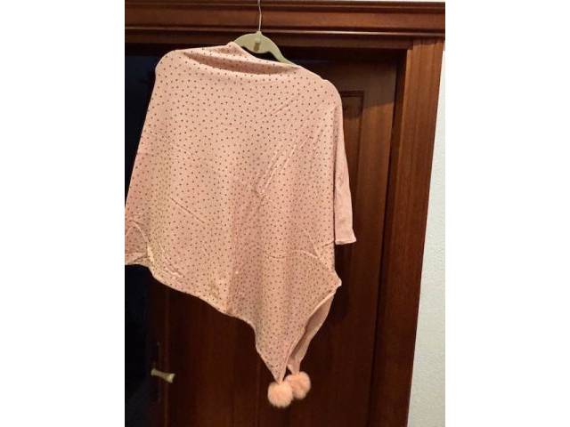 Ponchos in rosé and taupe with glitter stones and 2 fur pom-poms, € 20, per piece € 10