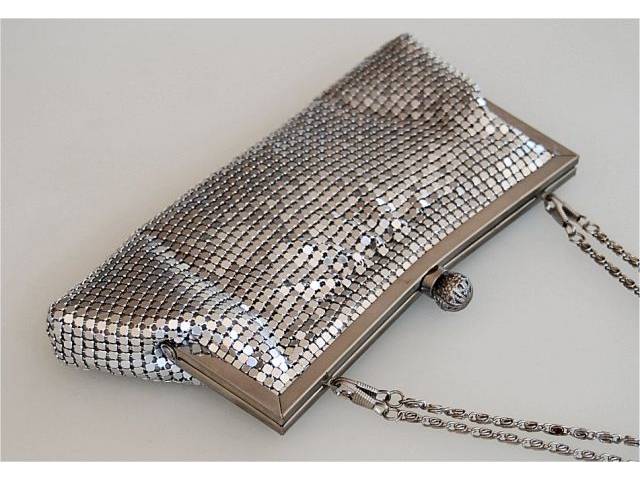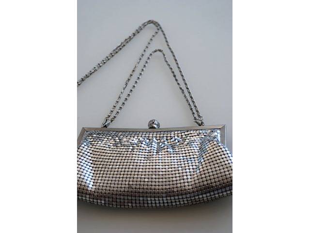 Women's evening bag, small shoulder bag, silver, sequin look,