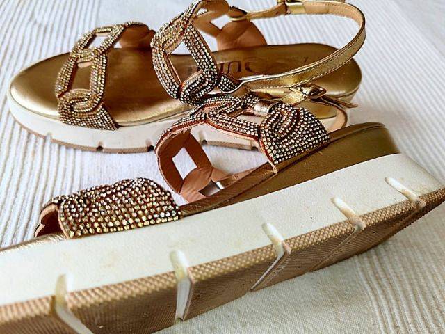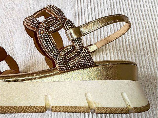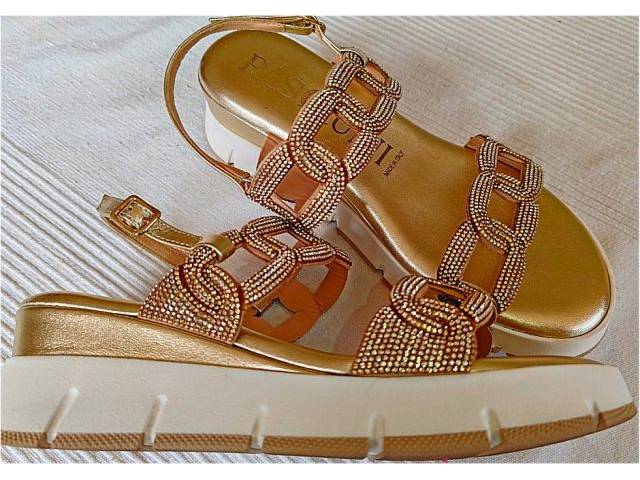 Women's sandal, nappa leather/rhinestones, size 38, Italy