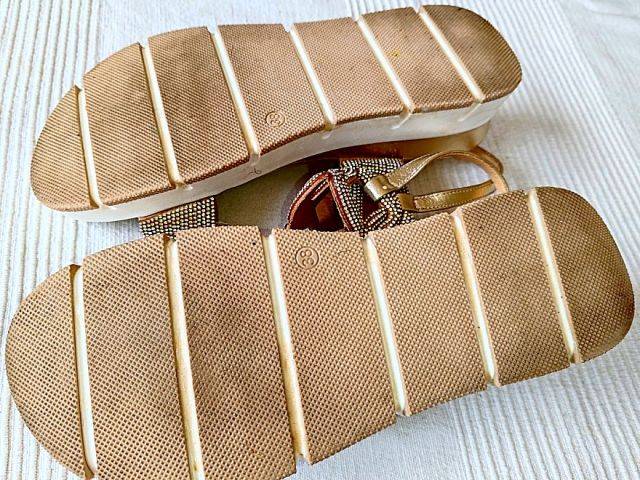 Condition: very good. There are few signs of wear. Sole wear barely visible. Upper leather and stone embellishment are completely fine.