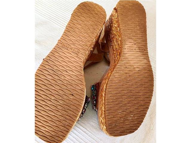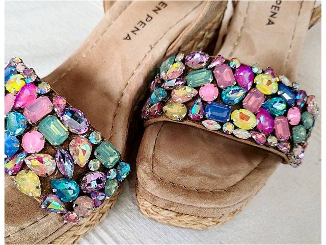 Women's wedge sandals, decorated with rhinestones, size 38, brand Alma en Pena