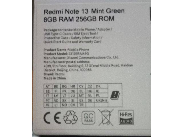 Redmi Note 13 in mint green 8GB 256GB in good condition.