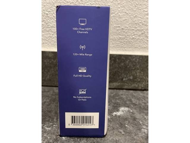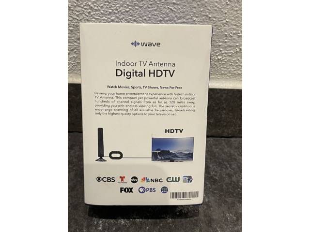 New and factory-sealed HDTV antenna, ideal for camping, outings or vacations, for sale.