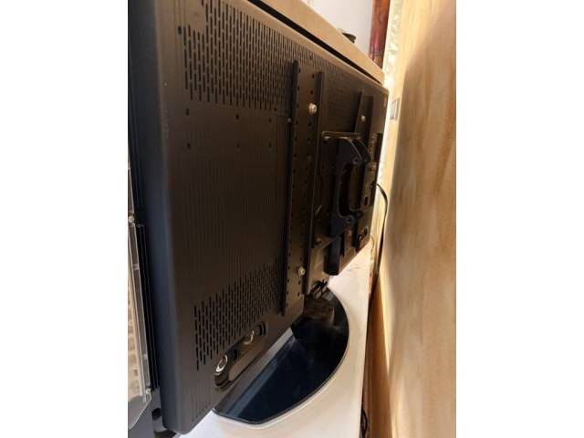 107cm diameter/42 inch Philips TV with Ambilight. Swivels on a stand. Additionally there is a wall mount. On top it has a crack in the plexiglass. However, this does not affect functionality.