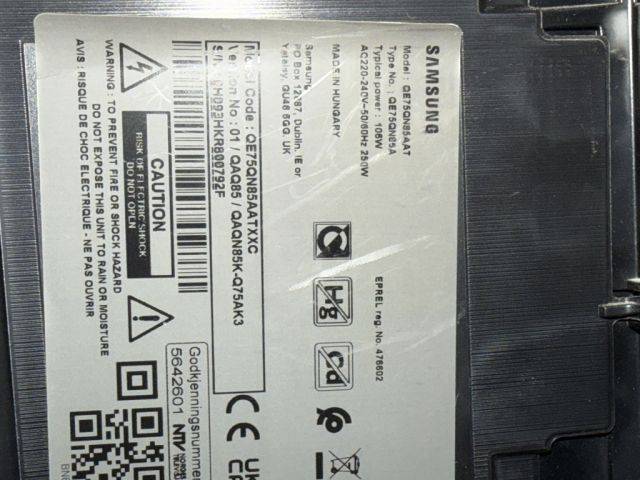 Hello, I'm giving away a Samsung TV to a tinkerer. 75 inches. It no longer turns on. It always makes a click click sound. According to YouTube it's a faulty capacitor or a cold solder joint on the main board.