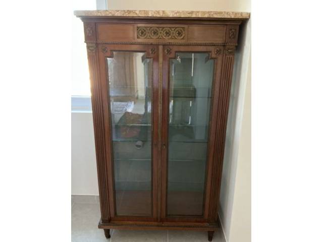 Antique Louis XVI Display Cabinet / Neoclassicism, Marble Top, approx. 160 x 85 x 43 cm