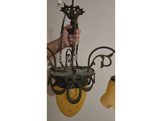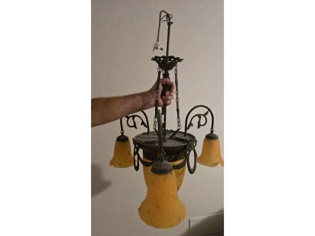 Beautiful antique Art Nouveau lamp. All glass intact. 4 light bulbs
