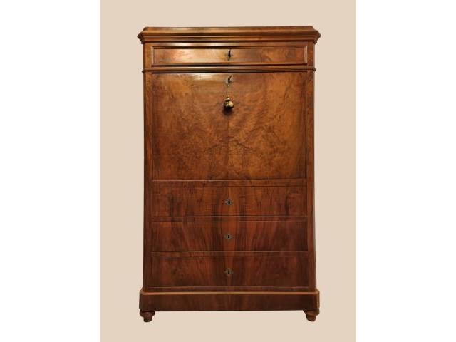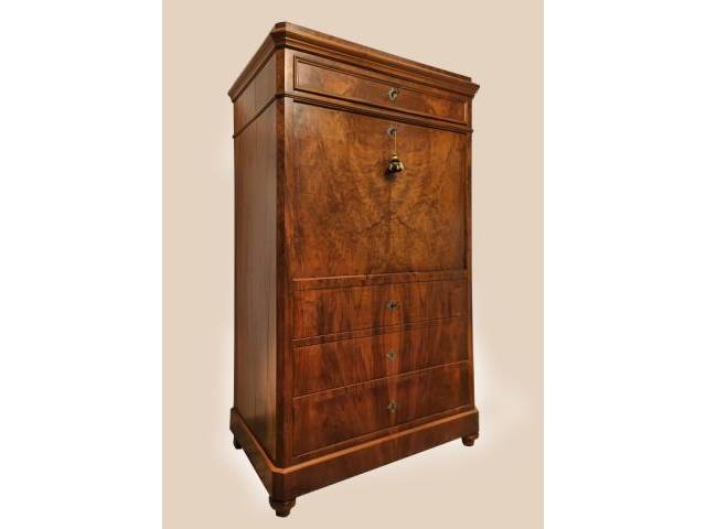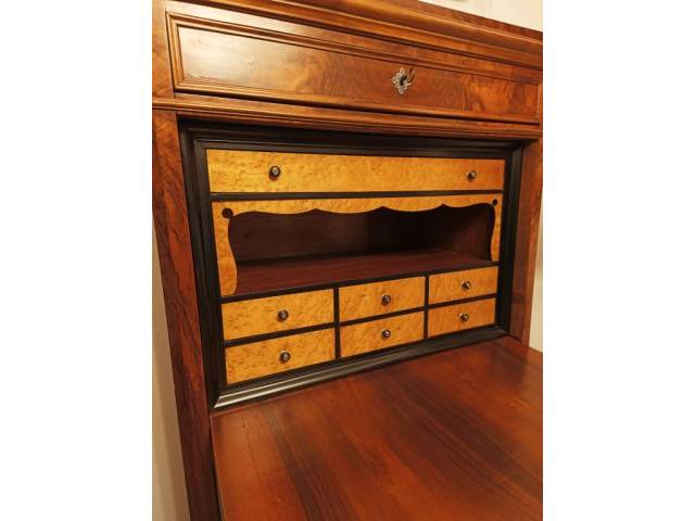 For sale: antique secretaire, c. 1880, walnut and burl wood, very good condition, excellent craftsmanship, restored, with a secret compartment.
