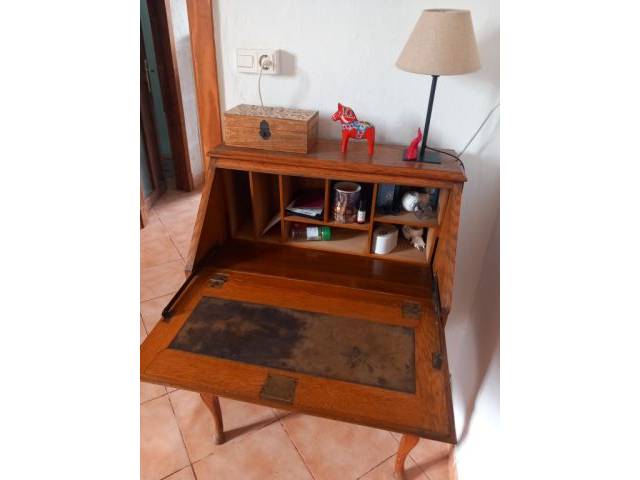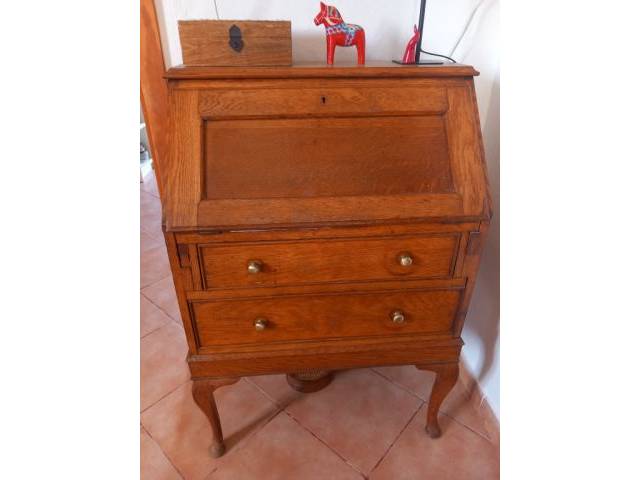 I bought the secretary desk at the antique market in Hamburg 30 years ago. 1 metre high, 68 cm wide, 40 cm deep.