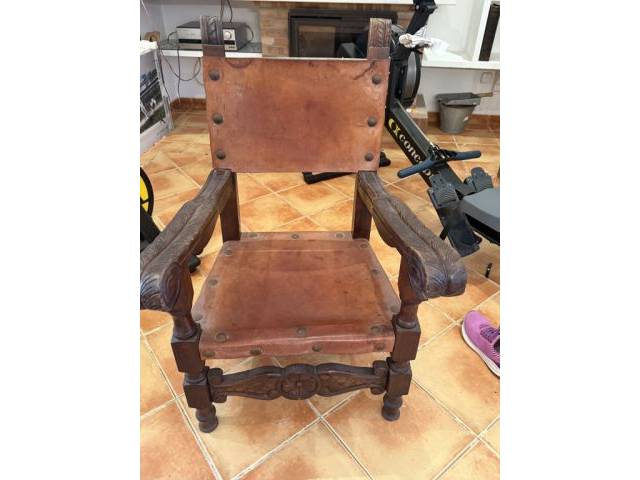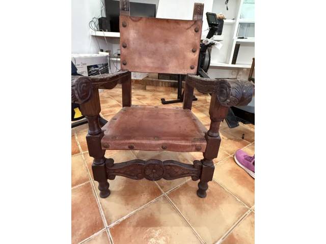 Antique Spanish Leather Armchair