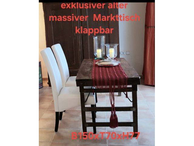 I am offering a beautiful, old and sturdy market table – conveniently foldable and thus easy to transport or store.