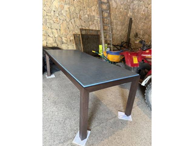 For sale is a unique stone table with a wooden base. The table is 220cm long, 90cm wide and 73cm high. It impresses with its massive appearance and unmistakable design. It has signs of use. He must be transported with at least two strong men. It can be visited near Pollenca. It is offered here for VB 350€.