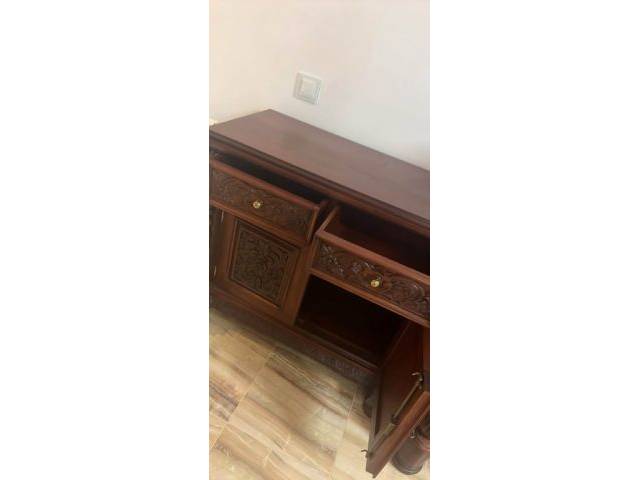 I have a wonderful solid wood dresser/sideboard with decorations to give away here. 2 drawers, key available, absolutely undamaged, colonial style