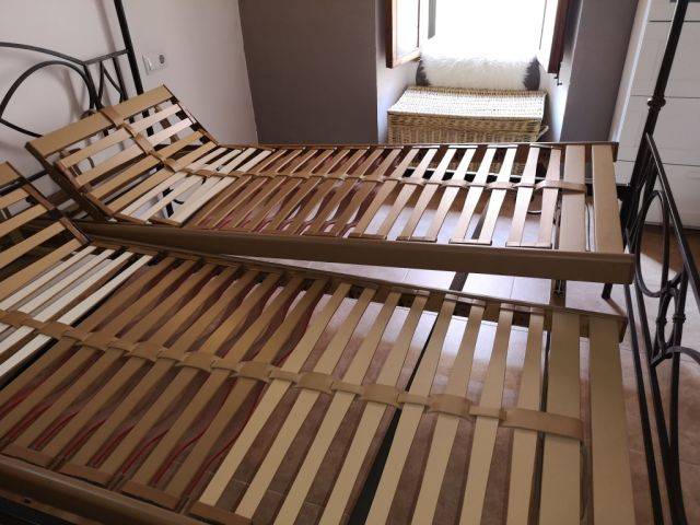 Slatted adjustable bed base in excellent condition, with central reinforcements.