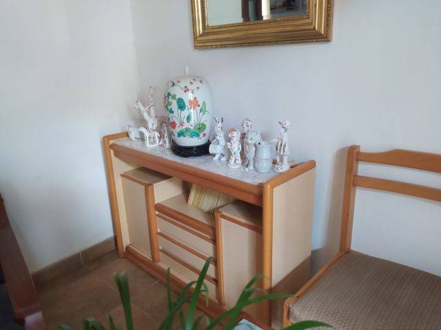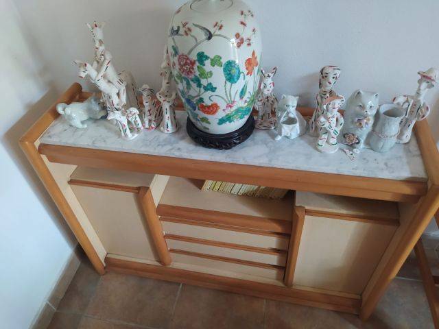 It is a storage furniture that combines drawers and cabinets. The top can serve as a display or support surface.
