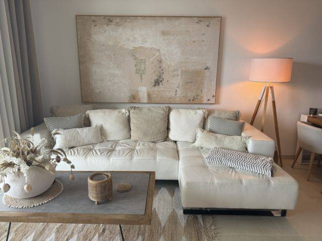 I am selling my modern and very well-maintained sofa, white genuine leather in a quilted design.