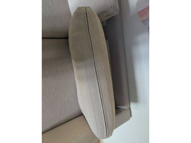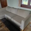 Well-preserved corner sofa with dimensions 240 cm by 160 cm for the chaise longue. Chaise longue lying surface 77 cm, sofa seat depth 70 cm. Pure linen; all cushions have removable covers and are machine-washable.
