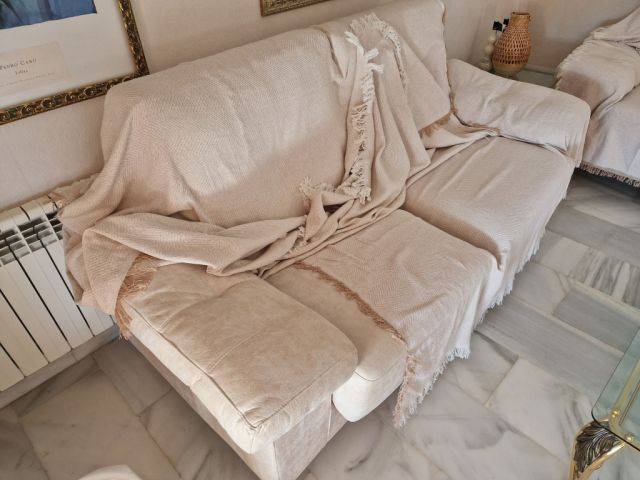 I am giving away a couch for the living room. The couch consists of a 2-seater with a length of 1.80 m and a 2-seater with a length of 2.20 m. A glass table can be included. There are also 3 rattan chairs and a small cabinet, e.g. for the TV, available.