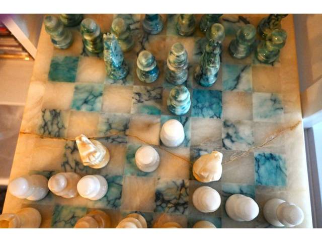 The chessboard looks very good and representative despite a break that has been very cleanly repaired (see photos). (The playing enjoyment will certainly not be affected.)