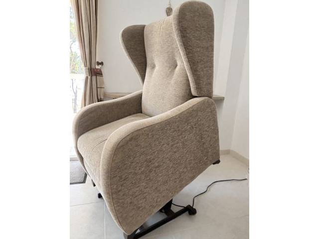 Very well preserved, cared-for and comfortable armchair in beige with electrically adjustable functions. Can be used as a recliner, extendable footrest, adjustable backrest, seat tiltable as a lift-assist. Upholstery fine velour in beige. No stains at all. Was used only by the owner. Purchased from Expo Möbel Manacor. Original price: €835. This model is still available at Expo Möbel Manacor. The armchair would be pick-up in Canjamel, 9–15 October 2025