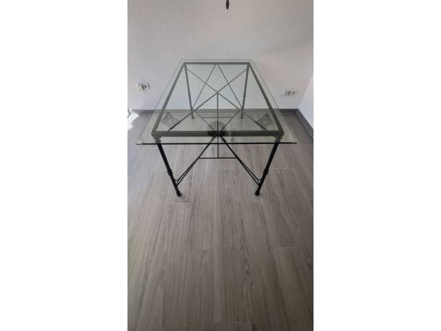 Glass table with metal frame