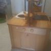 usable from both sides with plenty of storage space, stove, oven, refrigerator, sink & washing machine made of solid beech wood. The sink basin is missing but can be easily replaced.
