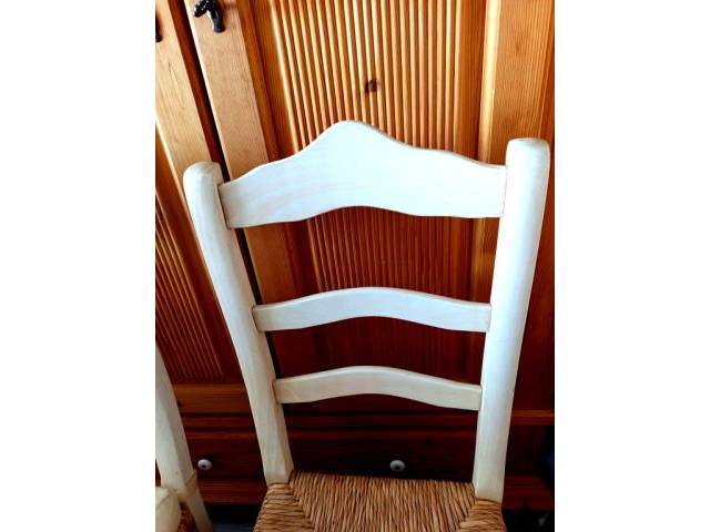 High-quality wooden chairs in cream white with wood wickerwork.