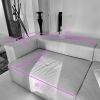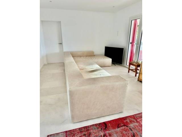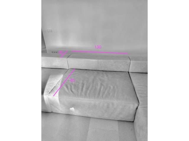 Included are 8 leather cushions (7 x 70x70 and 1 x 50x50) made from the same leather covering.