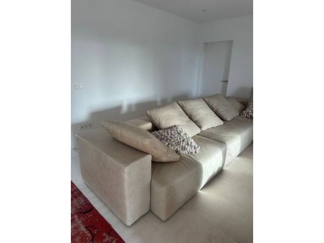 Selling a three-piece modern and high-quality lounge sofa in beige genuine leather.