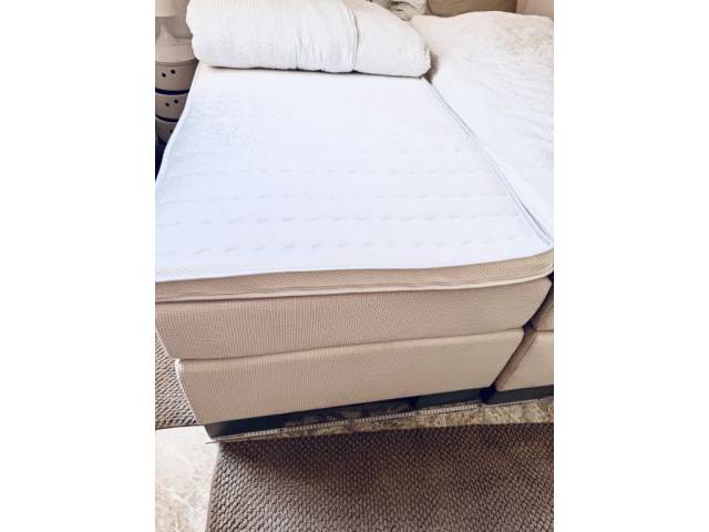 "As good as new box spring bed" is from Germany and cost NP 3500.-. Consists of two single beds 80x200 which I have pushed together or could set up separately. There is no headboard, you can design it yourself. The toppers are also new. Was only used 4 times. I would like to have a fair offer, but I am relaxed about the purchase price😃. Pick up Cala Mendia near Porto Cristo