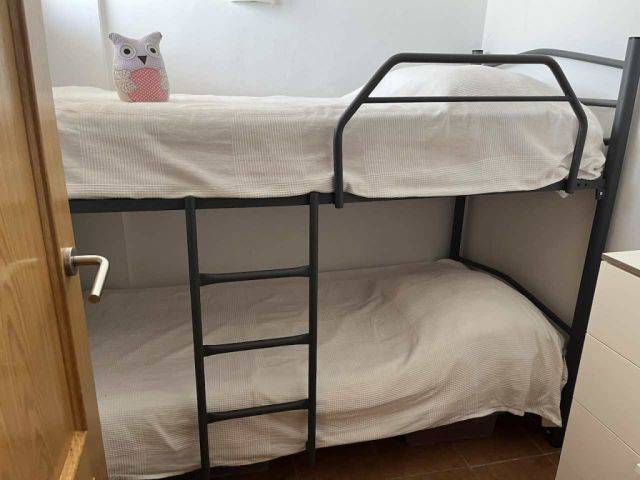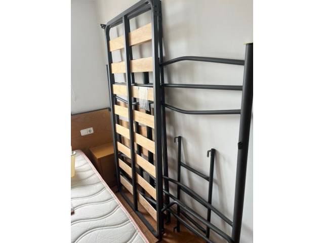 High-quality, sturdy steel bunk bed with guardrail, ladder and 2 slatted bed bases for mattress size 0.90 m x 1.90 m - ideal for a children's room or as a guest bed. The bed is in excellent condition. We have only rarely used it as a guest bed.