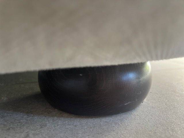 The legs are made of beech and stained in a wenge look (dark, almost black wood appearance)