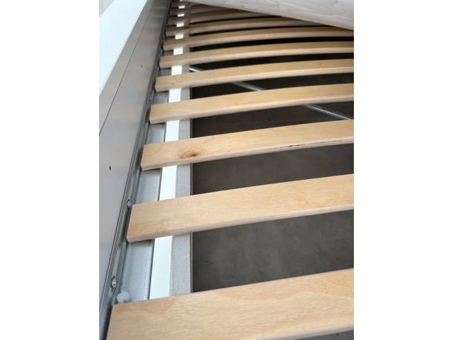 Absolutely TOP condition. Only 1 year old. Used only as a guest bed for my parents' visit (2 weeks in summer). No scratches. Mattress and topper have no stains or similar, as they were only used for 2 weeks.