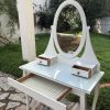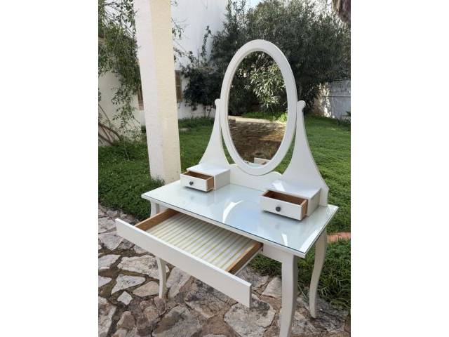 Elegant and functional white IKEA vanity, ideal for bedrooms or dressing rooms. Its modern and minimalist design brings light and order to the space. It features a large surface and practical drawers to organize makeup, accessories, or personal care products.