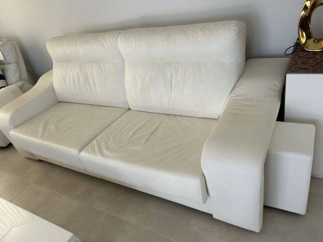 Sell hardly used Pull-out leather sofa white (mattress never used) otherwise like new