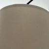 Floor lamp base with arch shape, black with a lampshade made of beige linen fabric.