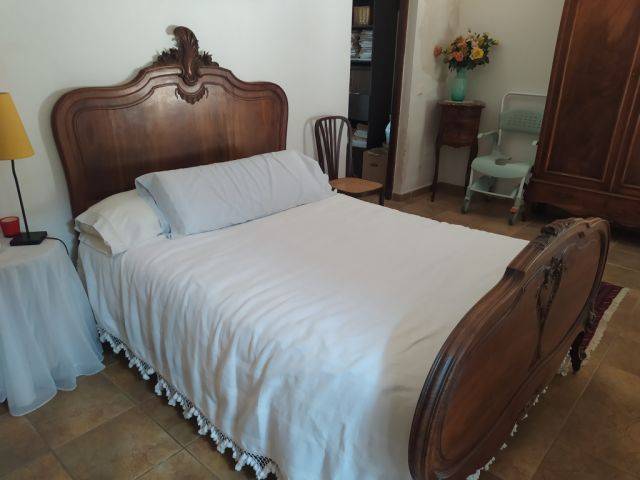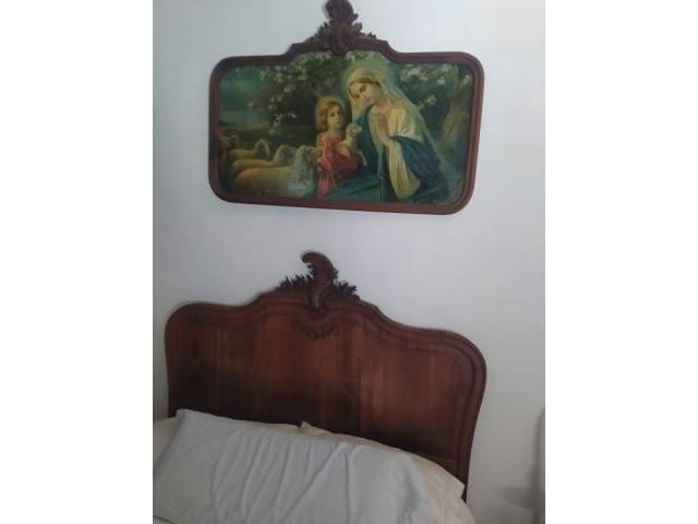 Antique French walnut double bed in Louis XV style from the early twentieth century in very good condition. It is possible to buy the complete set of wardrobe, chest of drawers, joker and picture frame together.