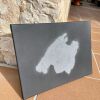 Selling an extraordinary Mallorca picture. The island is crafted as a sand relief in silver on black canvas. Dimensions: approx. 40x30 cm. Unique piece.